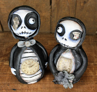 Meet Mr. and Mrs. Grim Reaper! I think they would be a really unique wedding cake topper! He is just shy of 5" tall and she is 4" tall. They are available in my etsy shop :o)